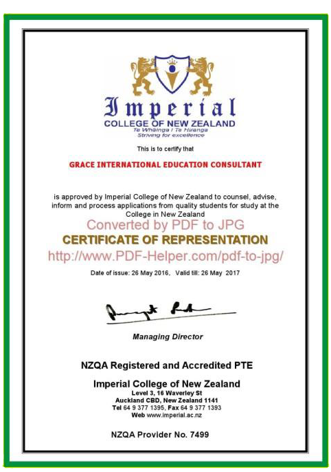 Grace International works with ISANA International Education Association in Australisa, and company Director is an ENZ trained agent. A number of whom have over two years of experience in immigration law. The company also liaison with Registered Members for other countries dowards preparation of the application.